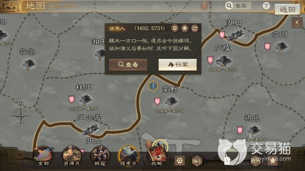它们的外形还是很好辨认的,背着个竹篓,守着一寸小摊,根据地图到达那附近后很容易就能找到,目前他的作用还比较集中,那就是解锁演义的新章节,毕竟这个玩法是不要消耗一兵一卒就可以获取丰厚资源的模式,所以后续的章节解锁肯定会有各种各样的条件,其中找到说书人就是比较常见的一种。