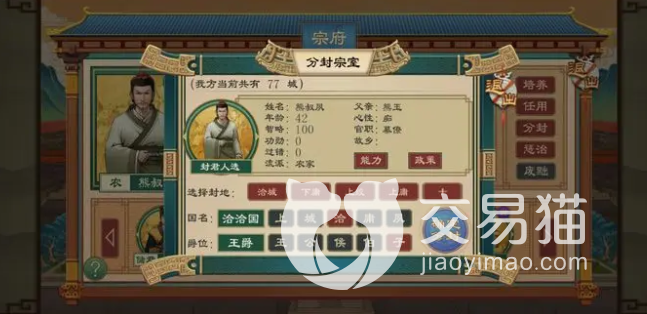 第二个方式就是可以去分封诸侯,制定继承人,大家培养好了子嗣之后,选择一个正统的,属性不错的子嗣成为储君,而宗室里面其他的年龄差不多的子嗣则是可以封诸侯,给一块土地给它们让它们自由发展,这也算是一个怀柔政策。