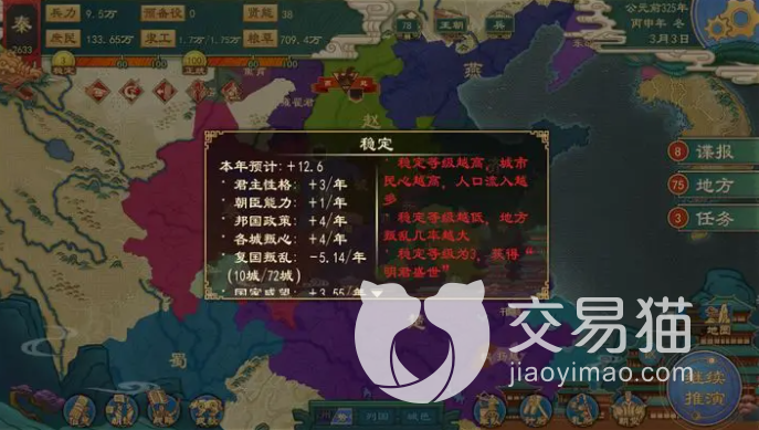 大周列国志游戏中各项玩法其实都是根据正史来制定的,比如各种税收计算,各种诸侯分封的玩法,本期给大家带来的大周列国志加稳定的方式分享内容,大家可以通过本期的内容在游戏中知道更多的稳定提升方式,只要稳定数值能够提升,那么势力的发展也会比较稳定。