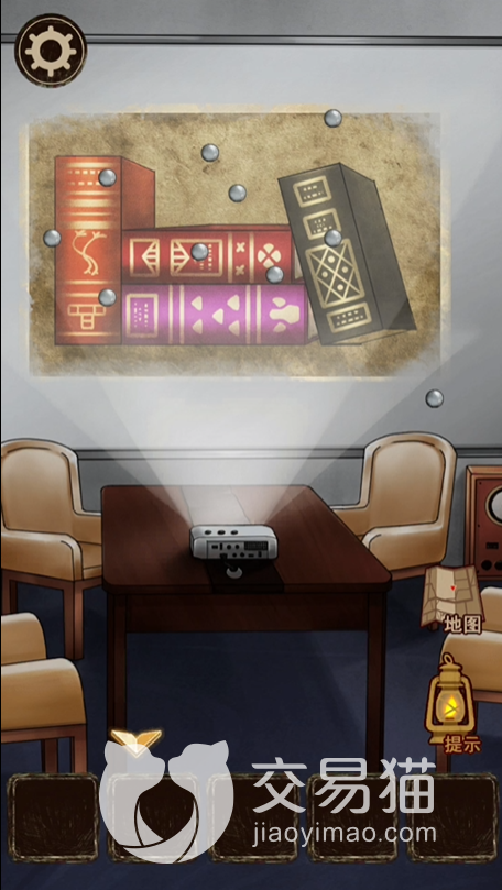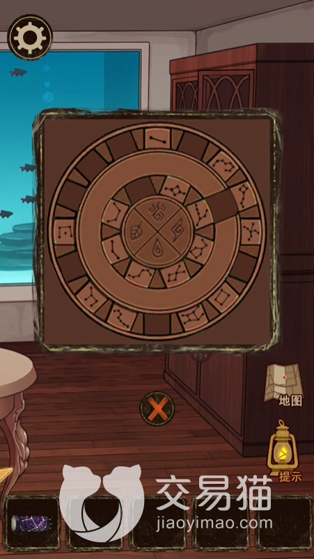 然后分别进入四个房间使用星空灯得到四个符号相对应的不同图案,然后会谈室的木盘上根据符号相对应的图案进行转动打开档案柜就拿到了信息线索。