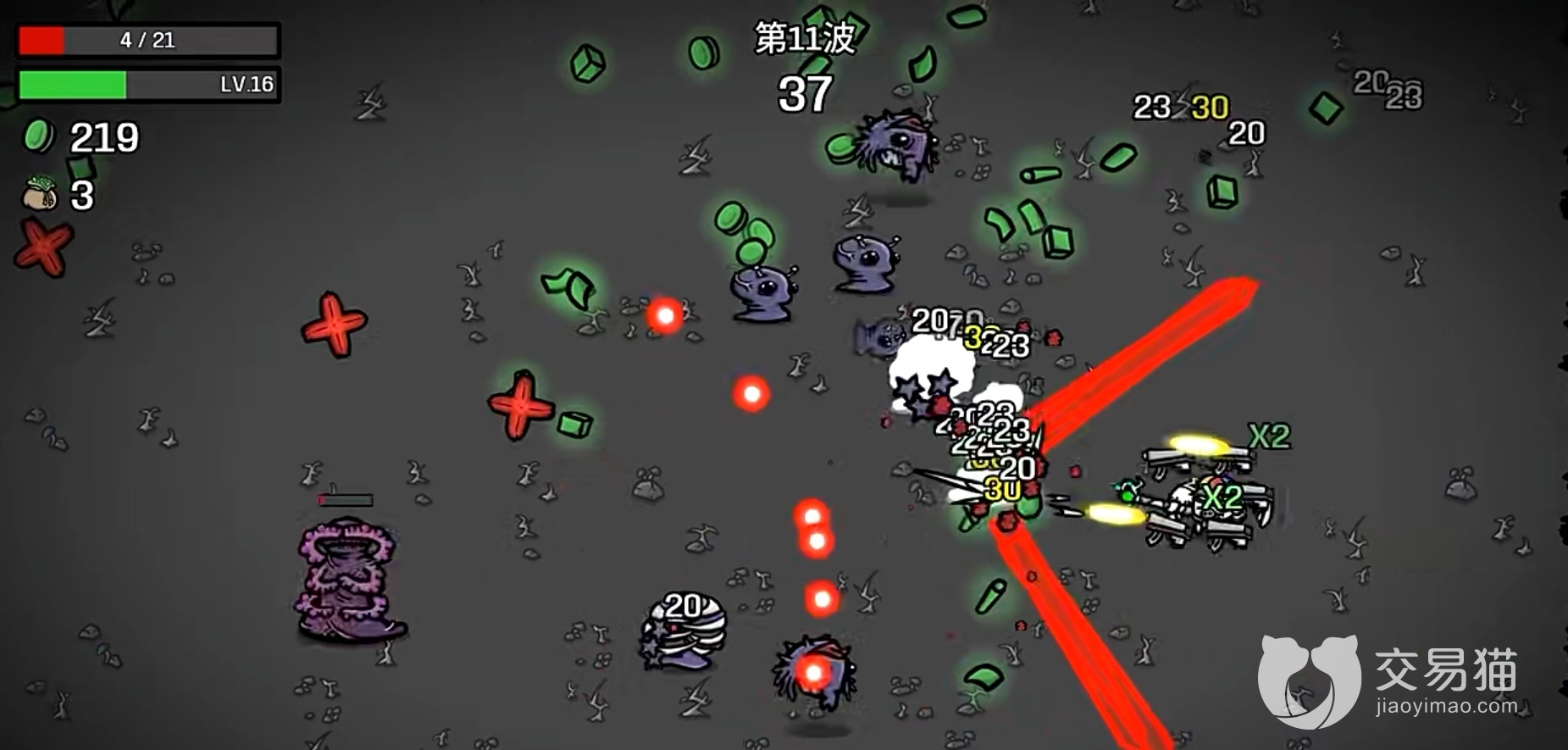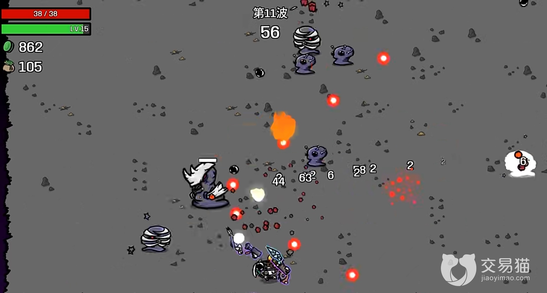 飞毛腿:使用这个角色一定要不停移动,否则容易暴毙,前期要着重拿近战伤害、攻速、收获,中后期要选择生命值、护甲与闪避,武器推荐大家去用长矛。