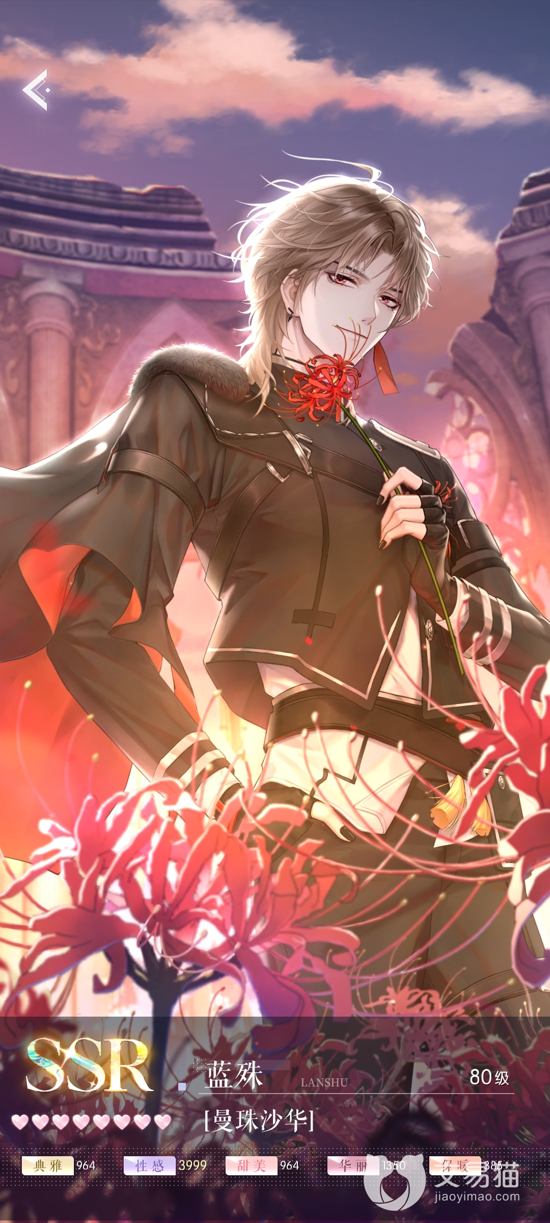 接下来是“曼珠沙华”,这张卡是蓝殊的,它的主属性为性感,副属性为华丽,与以上两个一样,也是保暖分较低,不过游戏内基本没有主属性为保暖的关卡,各位可以不用担心通关问题。