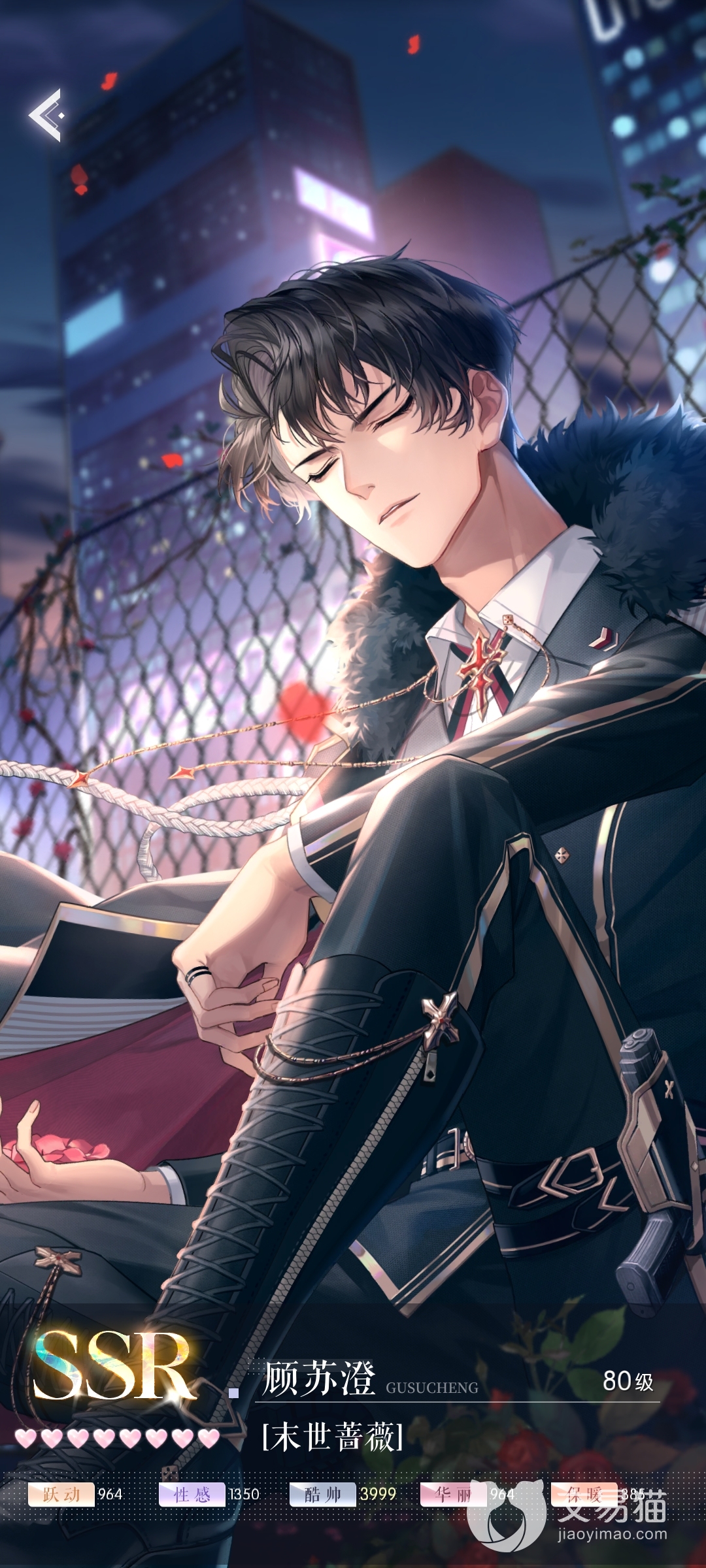 首先是“末世蔷薇”,这是顾苏澄的卡,主属性为酷帅、副属性为性感,评分最低的是保暖,所以除了在主标签为保暖的关卡内它都可以上场。