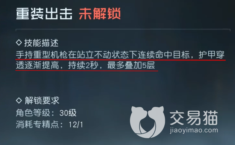 然后就是点击专精,大家在解锁了重武器之后,还有专属的技能也就是专精,这些技能是可以通过解锁升级的方式来提升战力的,比如重装出击,这类技能在大家使用重武器的时候可以带来更多增益,还有部分的防御型技能,就例如活性装甲,解锁之后带来的防御属性更高,玩家在等级上升的时候要给这些技能升级,最好是先升级重装出击这类带来伤害加成的技能。