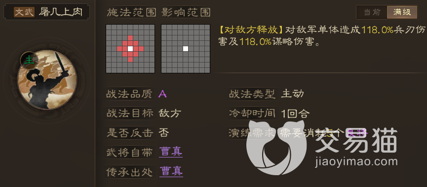 屠几上肉:数值很强的单体爆发技能,并且它属于混合伤害,对于那些武力和智力都很高的主C来说最适合不过了,而且它的施法范围也很大,能够根据玩家意愿自由攻击附近敌人。