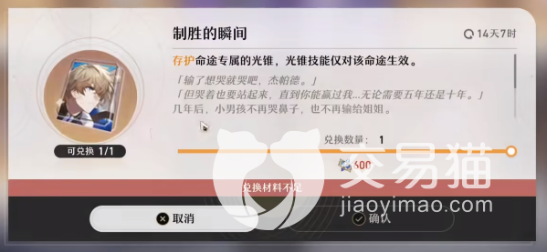 除了这个光锥外,“制胜的瞬间”以及“琥珀”这两个也是比较推荐的。前者不但可以增强三月七的防御能力,还能提高她攻击敌方的命中率,但缺点就是会让三月七更容易遭受敌方的攻击;后者同样可以提高三月七的防御能力,但加成系数要稍微低一点,不过当三月七的生命值剩下不到上限值的一半时,还会继续增加她的防御能力。这两个的推荐指数不如“余生的每一天”,为三颗星。
