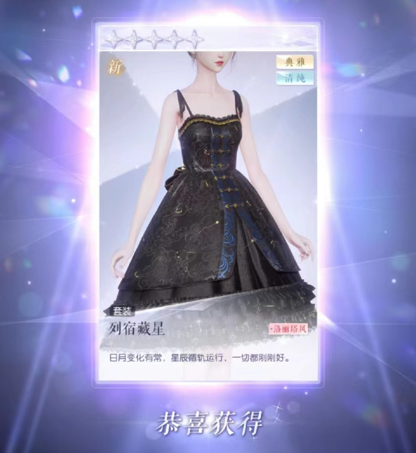不过抽卡获取列宿藏星的追光活动已经结束了,如果真的想要这套衣服,那就只有一个办法,等!等复刻或者找到一个有列宿藏星时装的账号。