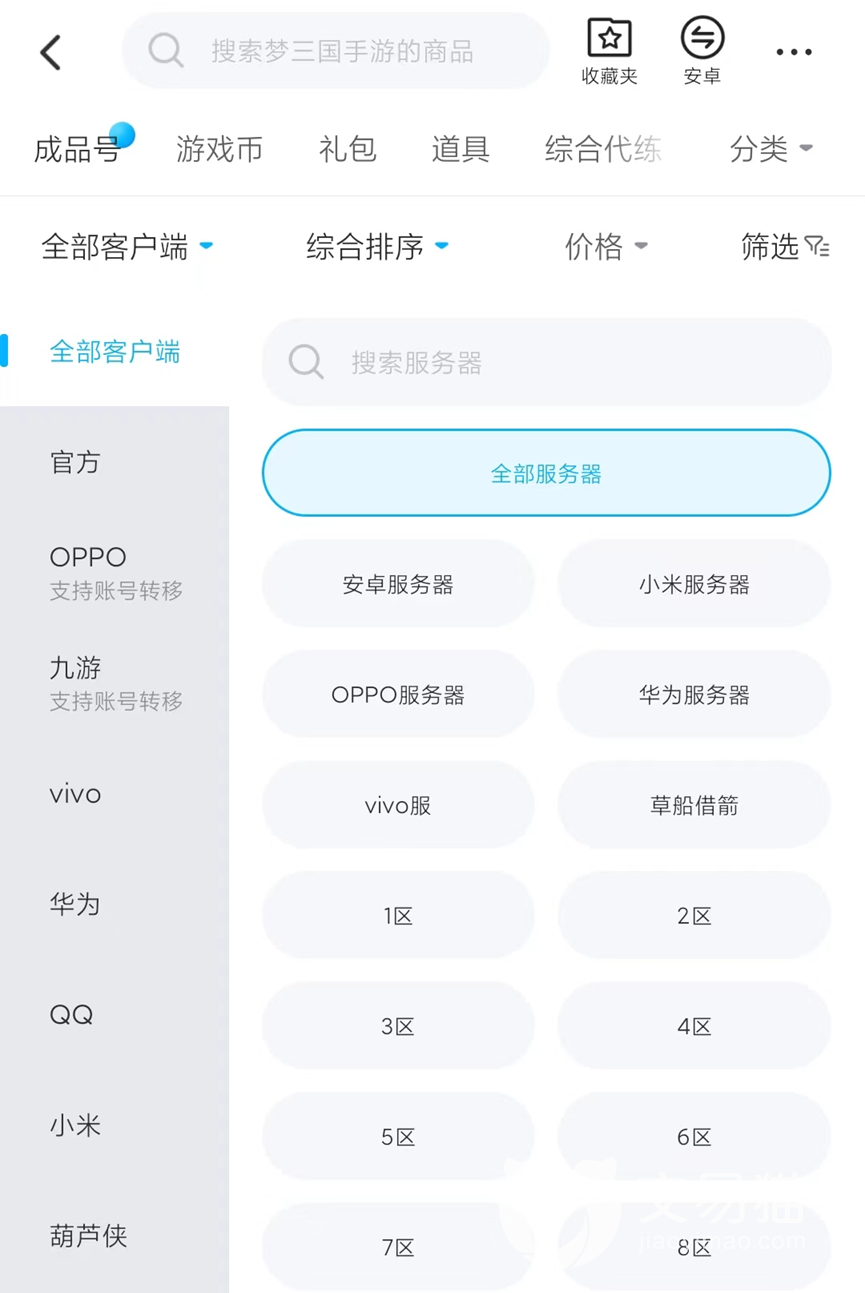 其他的小编就先不说了,想要出号的小伙伴肯定都知道梦三国游戏有很多不同的渠道服,想要将这一些渠道服综合在一个账号交易平台上让大家进行交易本身就是一件不容易的事情,但是交易猫却做到了,大家可以在这里找到全部的梦三国游戏账号渠道服,尤其是OPPO渠道和九游渠道这两种渠道的话,交易猫还可以提供账号转移的服务。