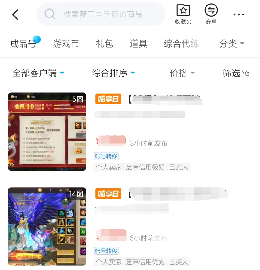 大家如果仔细观察了梦三国游戏账号交易专区的话,就会发现有很多账号是一小时前,两小时前或者三小时前上架的账号,这就证明了有很多梦三国的玩家都在使用交易猫进行一个账号的出售,侧面证明了这个游戏账号交易平台还是十分令人放心的。