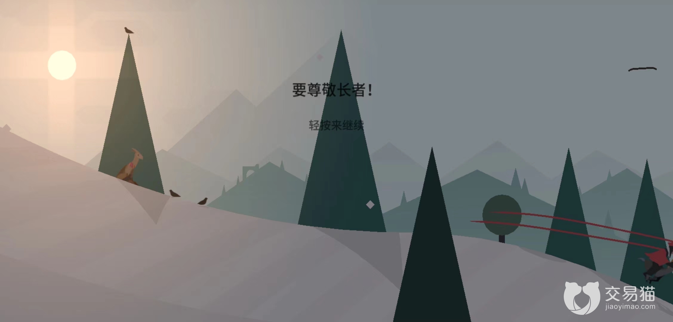 在玩家们滑行距离超过2500米之后遇到第一位“狩猎”你的人,一旦被他追上,他会用他手中的棒子敲打你,提醒你要“尊敬老人”。这位老人就是游戏中的“猎人”,在游戏中,只要跳过了在火堆旁边的帐篷必然会吵醒他,无可避免的一次追逐战。