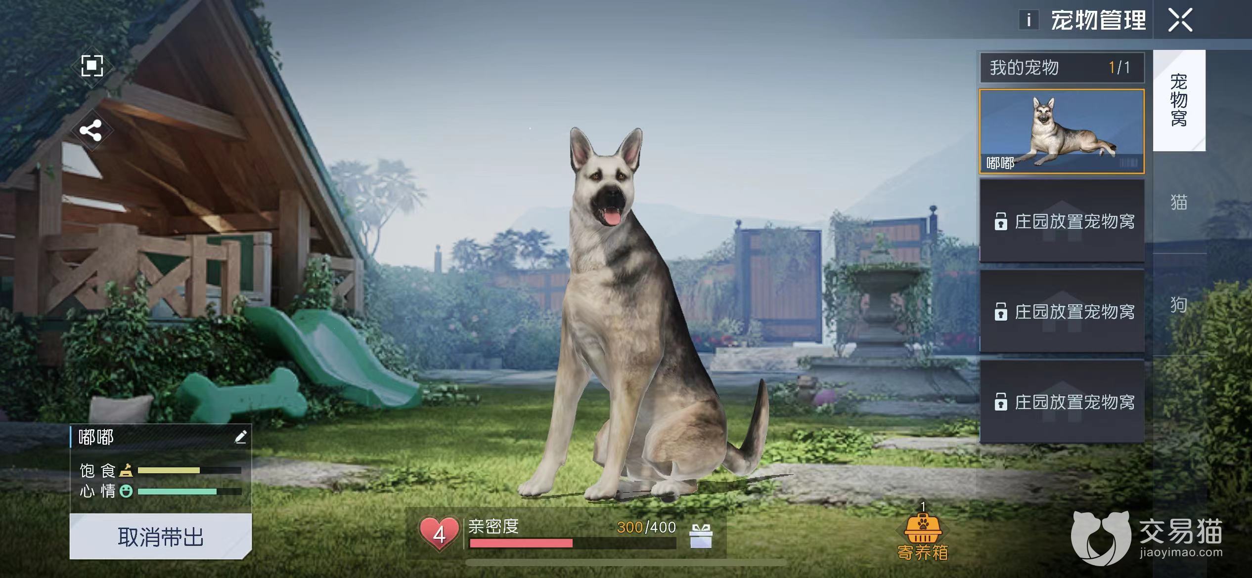 领取了宠物之后可以把宠物窝安置到自家庄园中,通过户交互的方式提高宠物的心情值和亲密度,如果你的小猫或者小狗饿了,记得在宠物商店购买猫粮和狗粮按时喂养他们哦。宠物也可以跟随主人一起外出战斗,或者把他们留在庄园里看家护院。