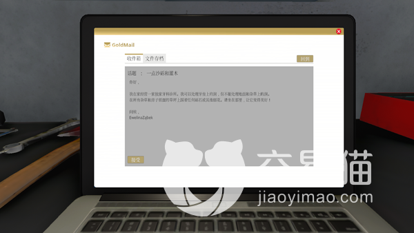 我们在完成前置的两个任务之后就能够在笔记本电脑中看到牙医Ewelina寄来的信件,他说自己可以给牙齿补洞,但是对于院子里的杂草和砾石确没有任何办法。这里接受了任务我们就会自动切换到他的花园中并且解锁种植和洒水的全新技能。