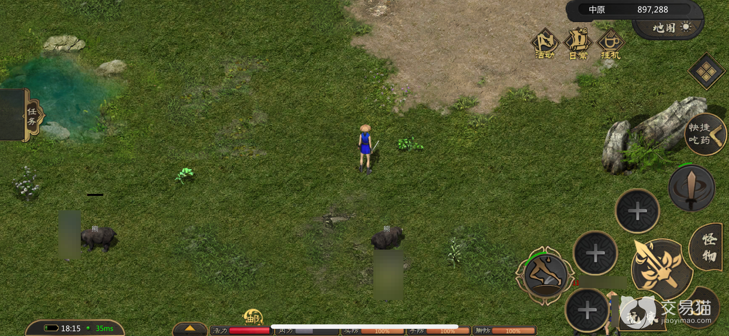 打开人物版块可以看到玩家们当下的耐性百分比,想要提高的话。那就先打开设置,把自动使用药品关闭,战斗设置中的自动护法也取消,身上的装备也要去掉。然后就是在地图上找到怪比较集中的地方,然后打开设置里的“自动步伐”等着被虐即可。