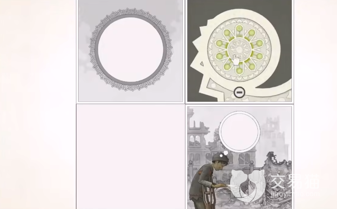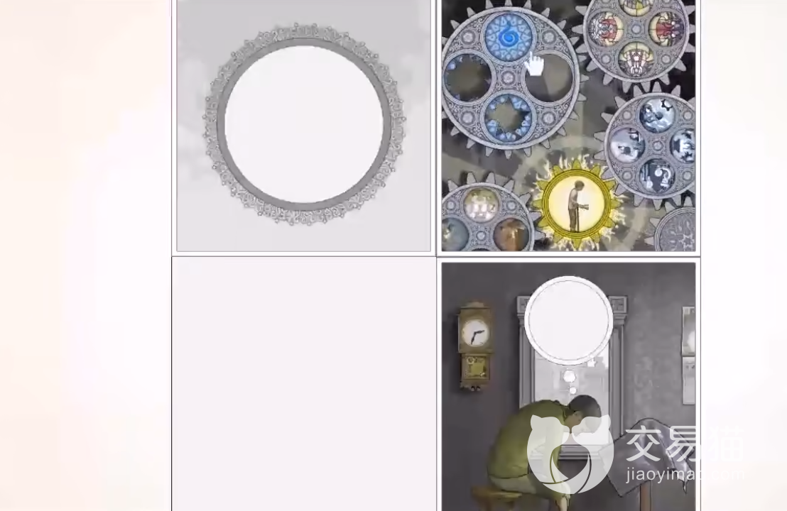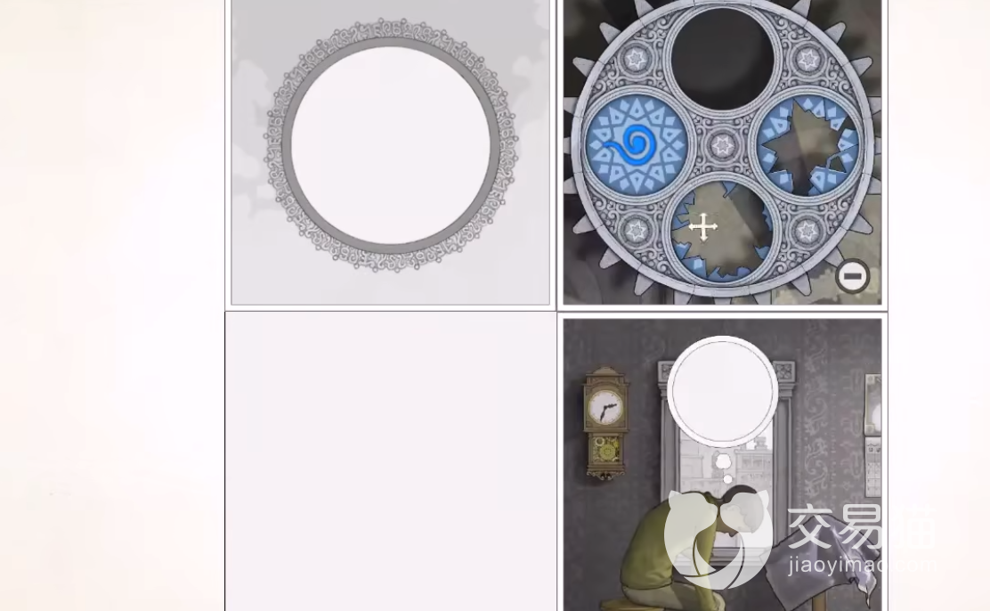 点击第2个场景的往下挪动视角,然后将第4个格子覆盖在第2个格子上,让主角走路移动齿轮。在齿轮移动的时候点击放大蓝色轮盘,当圆轮移到最上格时,拖动第3个场景格子覆盖在第2格上,即可收获蓝色果实。