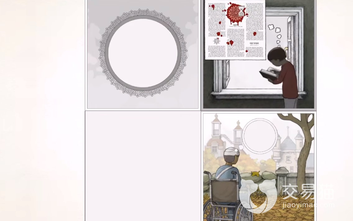 点击第3个黑色果实,同样脱框到第1格。主角坐轮椅的场景放第三格,然后点击第2个苹果图画,缩小后进入房间,点击幼年时期主角。