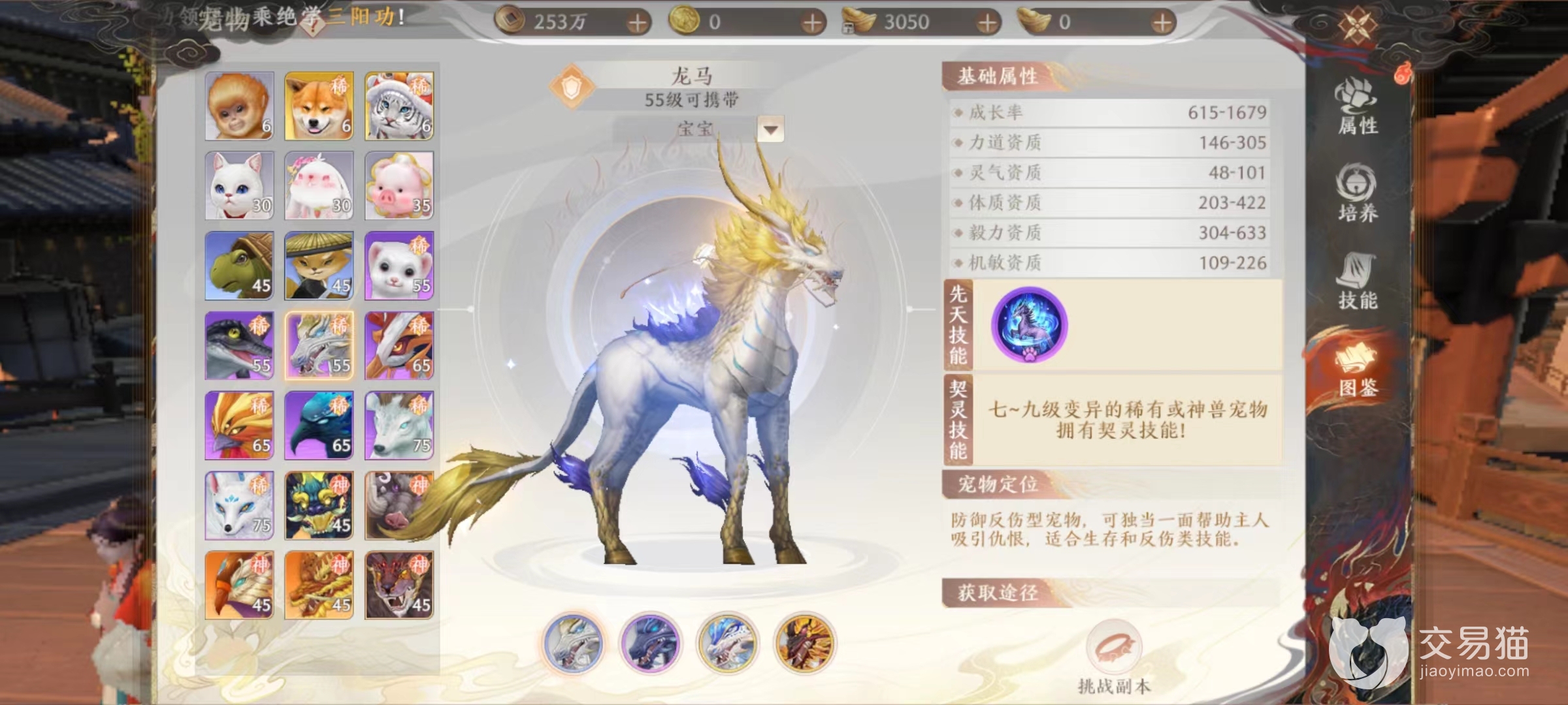 后续需要注意的是对战力影响最关键的几个方面,也是需要投入精力最大的地方,首先是出战宠物选择,不需要收集太多,绝大多数玩家有一两只宠物满足不同作战需要就完全够用。一只内功或外功输出,一只用于当做肉盾。主要通过挑战副本方式掉落引兽香,然后自己收集获得。这些稀有宠物通过不断繁殖还能得到变异类型,属性更加强大。