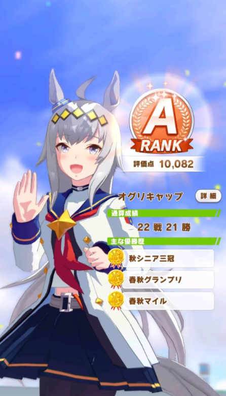 最后的有马纪念和经典级的时候(目标5)不同,对手的持久力都很高,很难获得第1。持久力C+绝佳状态的话基本不会输,但是有必要的话还是要用一下闹钟。之后的URA总决赛应该都是一哩赛,可以轻松获胜。