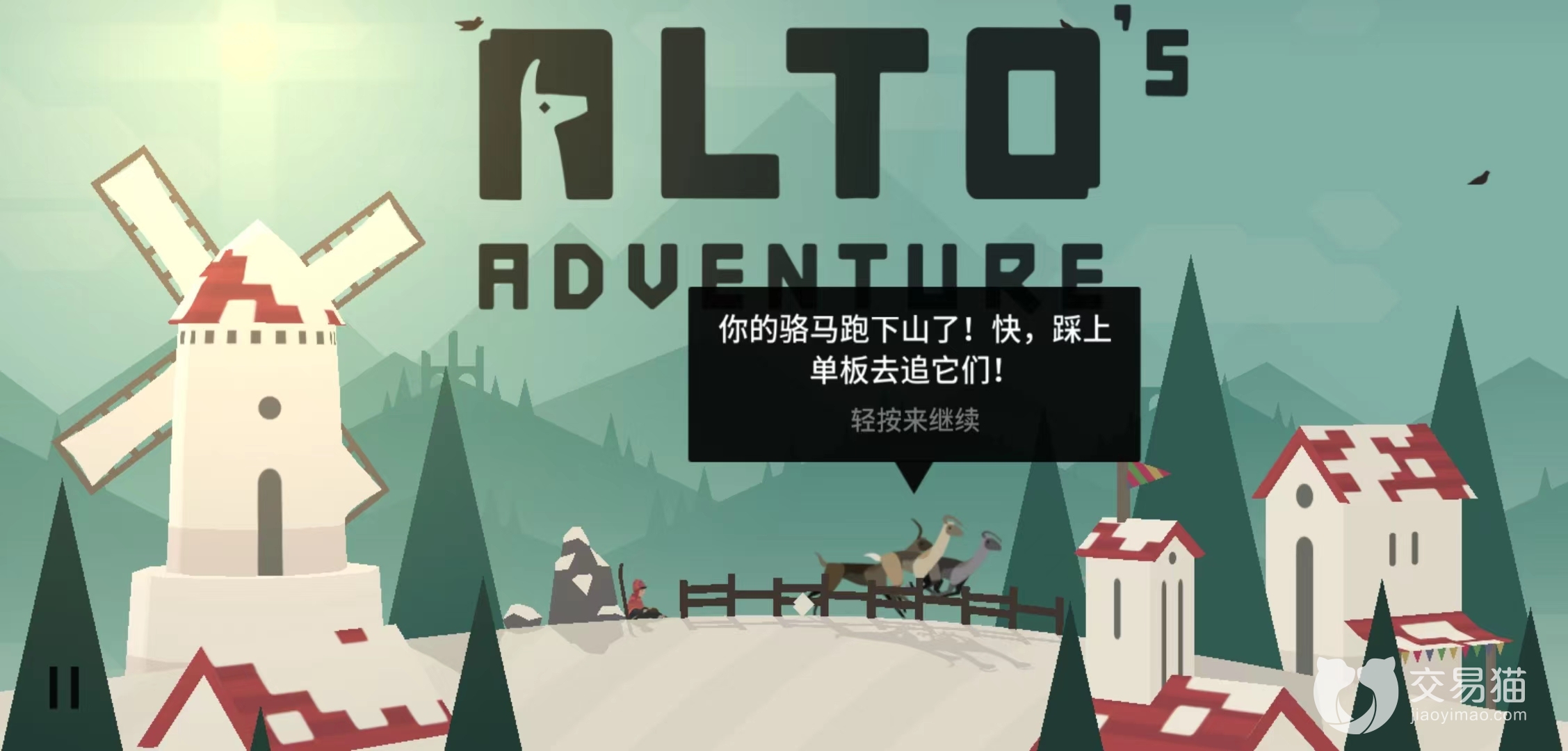 开始解锁任务的时候,先来了解下游戏的背景故事,故事以Alto为主角,在山村的雪地上进行滑雪冒险的故事。