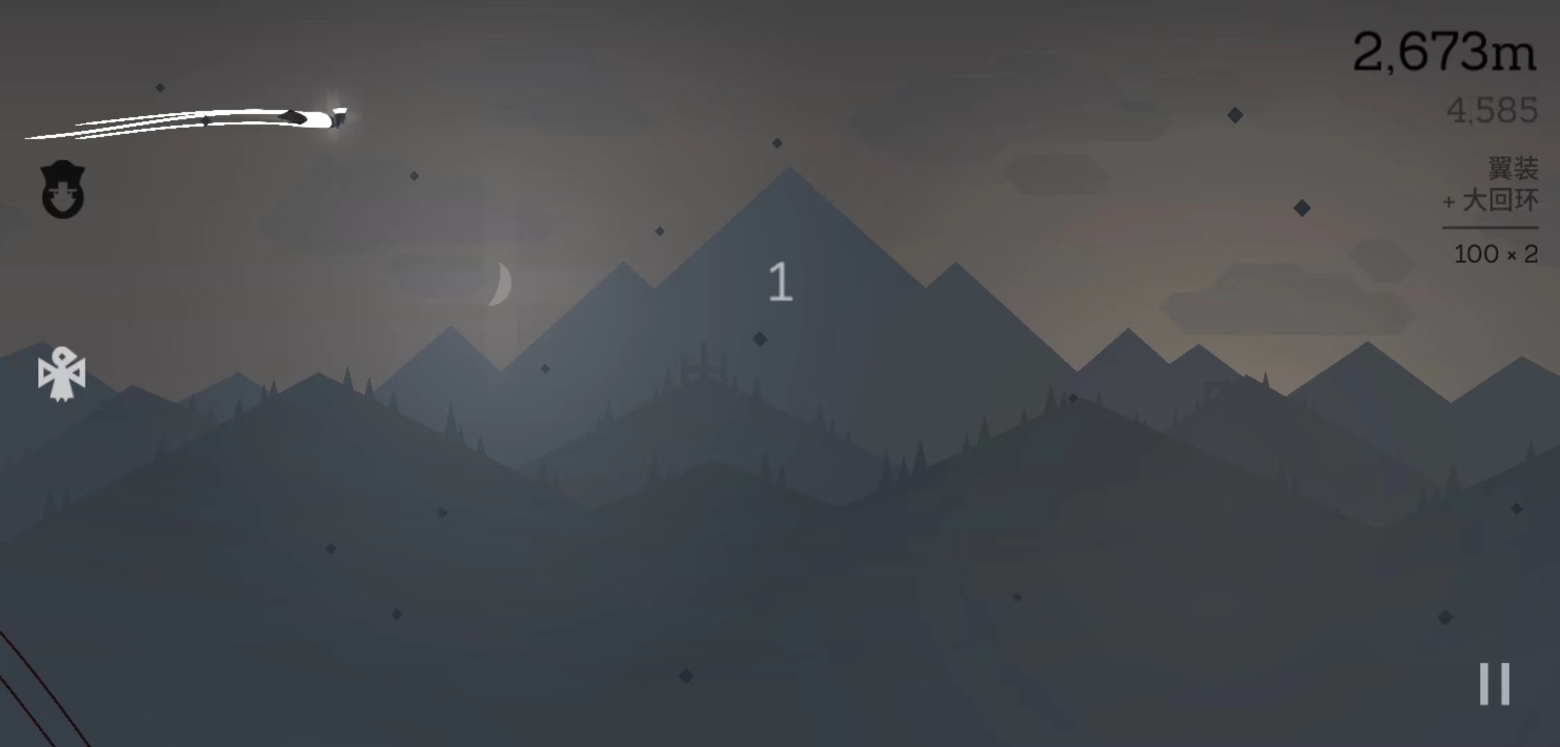 完成上述操作之后,就来开始滑行吧。在滑行时候,当有合适的坡道的时候就请翻起来,普通的后空翻分数不高的,如果可以叠加磨边和持续的后空翻那么分数就会高一点。这些当然是远远不够的,玩家们可以观察右边显示的当前分数。一段过程中,如果花样越多,得分越高,那么相应的开启翼装的机会越多。