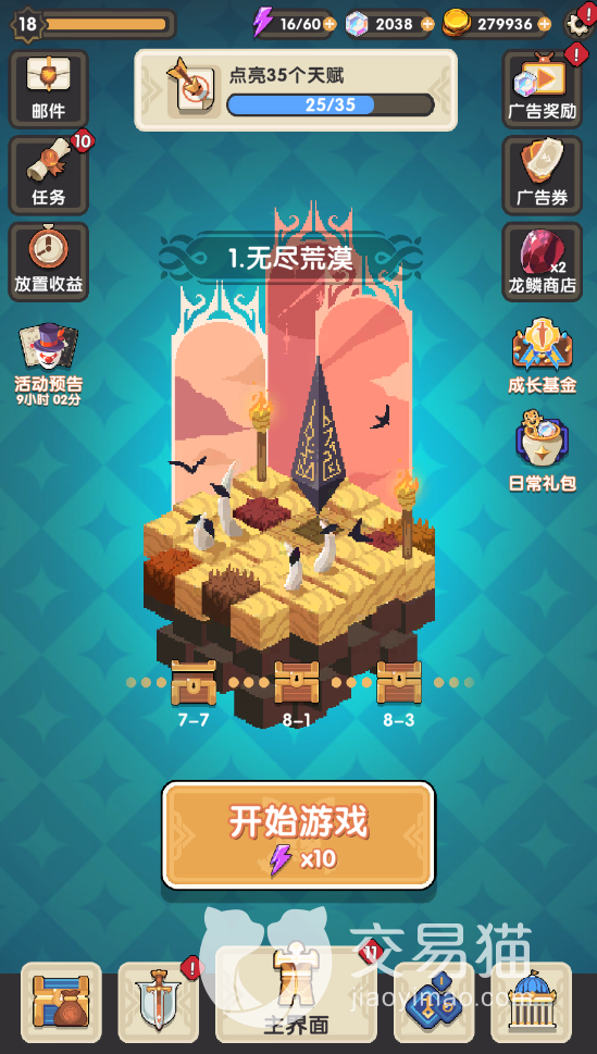 勇者秘境无尽沙漠怎么玩小编就介绍到这,可以在不断攻击小怪提升角色能力,快速选择提升技能等级,为后续击杀终极BOSS准备。当挑战无尽沙漠通关后,可以获得金币和升级劵作为奖励。