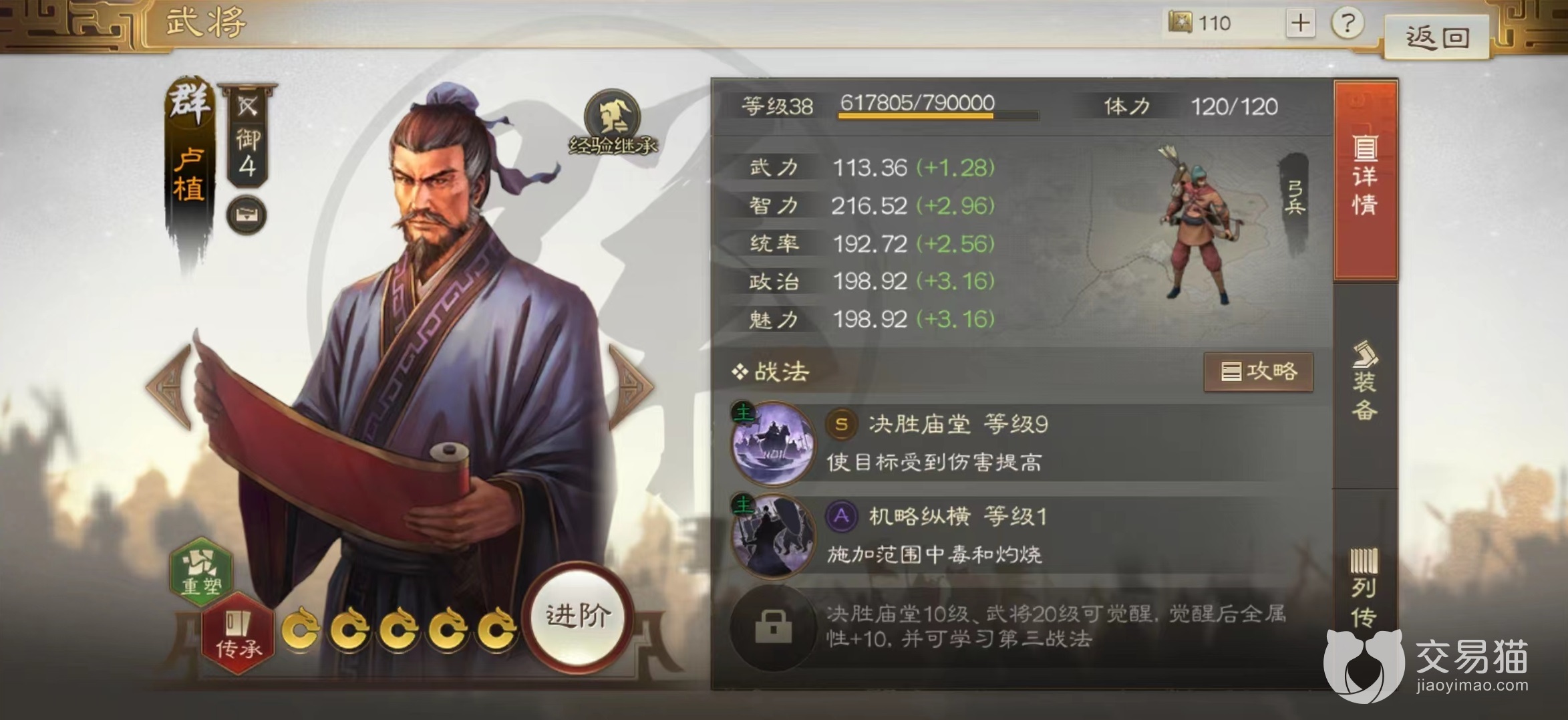 对于平民玩家来说,不需要选择其他稀有角色,前期活动赠送的曹仁和黄埔就已经能够承担起前排肉盾重任,有了这两名盾兵武将,吸收伤害就完全够用。另外赠送的卢植也是很出色的人选,单体伤害非常高后续还有加成,培养得当甚至可以直接秒掉对方低血量角色,接下来再配合上大乔或小乔当做奶妈,其他输出人选因为个人抽卡情况不同,所以小编只能提些建议。郭嘉和庞德在抽取难度上不高强度却很不错,用于在八级土地中打输出完全没有问题。