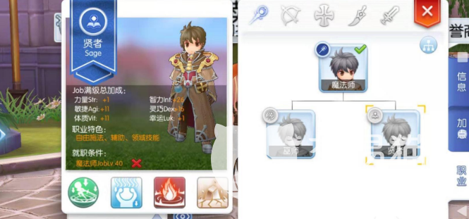 并且很多套装都能够在摆摊区周围找到,还有各种等级的,玩家需要按照经济情况去选,当职业升级为了最高等级,还可以二转,成为贤者。