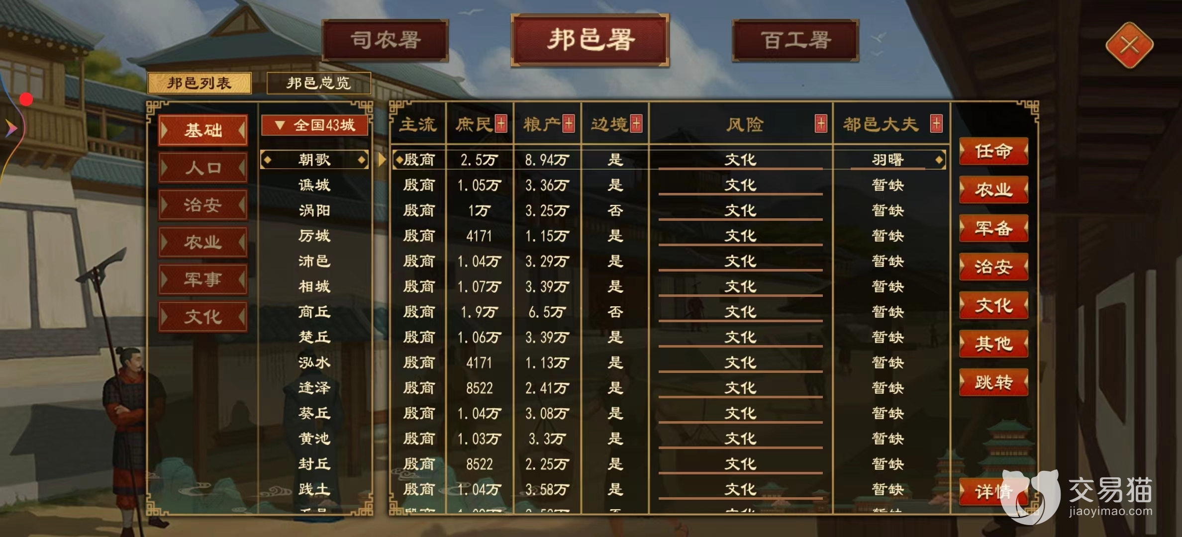 其次就是招贤年龄和负责人的选择,这里小编建议将招贤年龄的要求放低,虽然大部分优秀的人年龄都不会小,可是低年龄的贤能在成长过程中个人能力也会提升,同时一定要选择最好的人去负责招贤工作,负责人和贤能的品质直接挂钩,负责人的品质越高,找到的贤能品质越高。