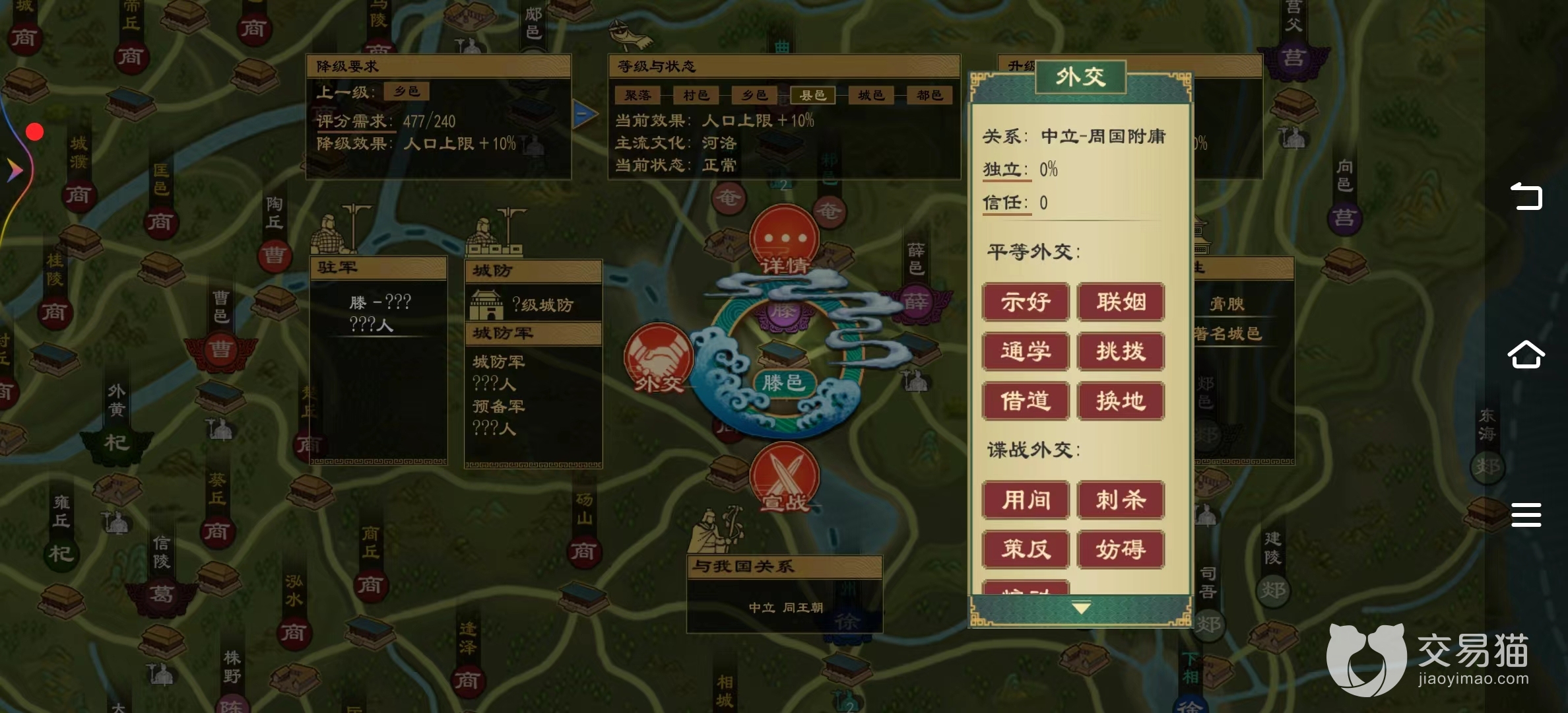 以上就是小编收集到大周列国志诸侯相王条件是什么的全部信息,作为一款以策略为主的游戏,方方面面的都需要注意到,对喜欢谋略的玩家来说最合适不过。