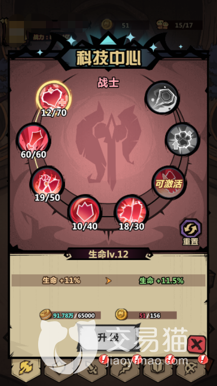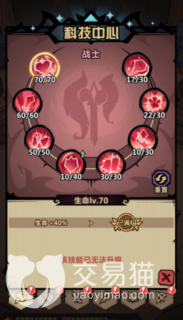 但是战士一个职业也有八个分支。为了在前期能够大幅度的提升我们的犬将势力,建议优先加点攻击,暴击率以及技能伤害。在科技点不富裕的时候也能够很大程度提升我们的实力。生命值,防御值的优先级相比较就逊色了很多。在前期升级这些会影响我们提升实力的速度。
