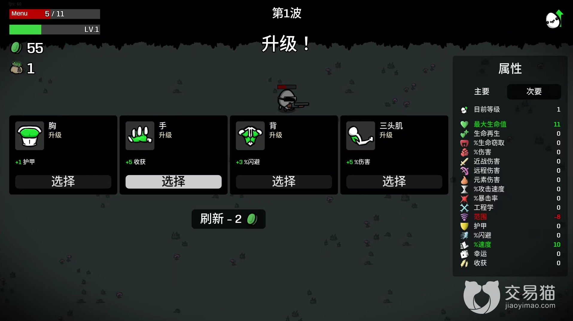 4、小青蛙:拾取范围加20%、增加10收获、减少5%闪避。