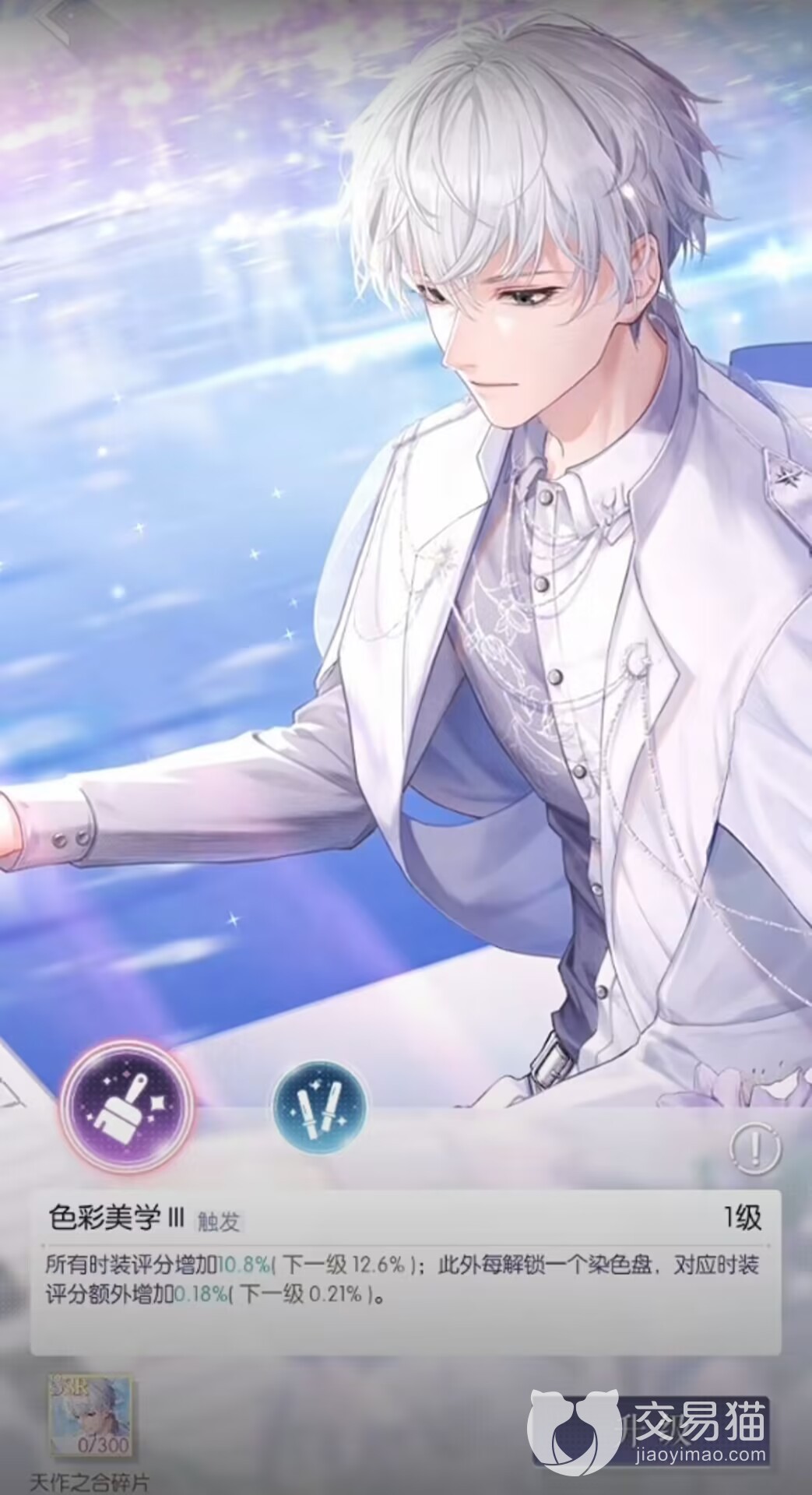 并且天作之合这张卡是属于男主落言的羁绊性质卡牌,卡牌的属性标签主打的典雅,主动技能是色彩美学,技能效果除了最最基本的为己方玩家的时装搭配提升大量的时装评分以外,还可能触发专属的闪亮效果。基础的每一层提升比例为百分之八,同时每解锁一个染色盒,还能够额外提升百分之一左右的属性效果。