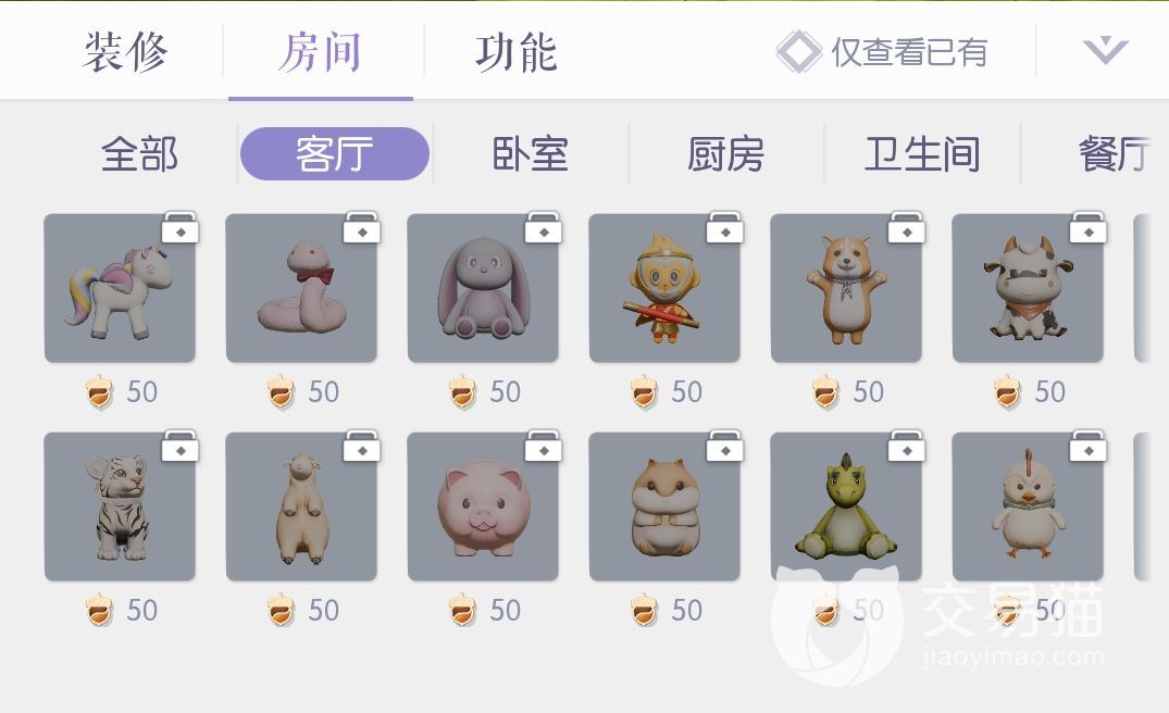 这三个选择一个是房间的外饰,一个是房间的家具,一个是具有功能性可以互动的家具,我们需要花费“家具小栗”来兑换它们,但是同时“家具小栗”也是可以让我们购买更大房子的货币,要注意使用。
