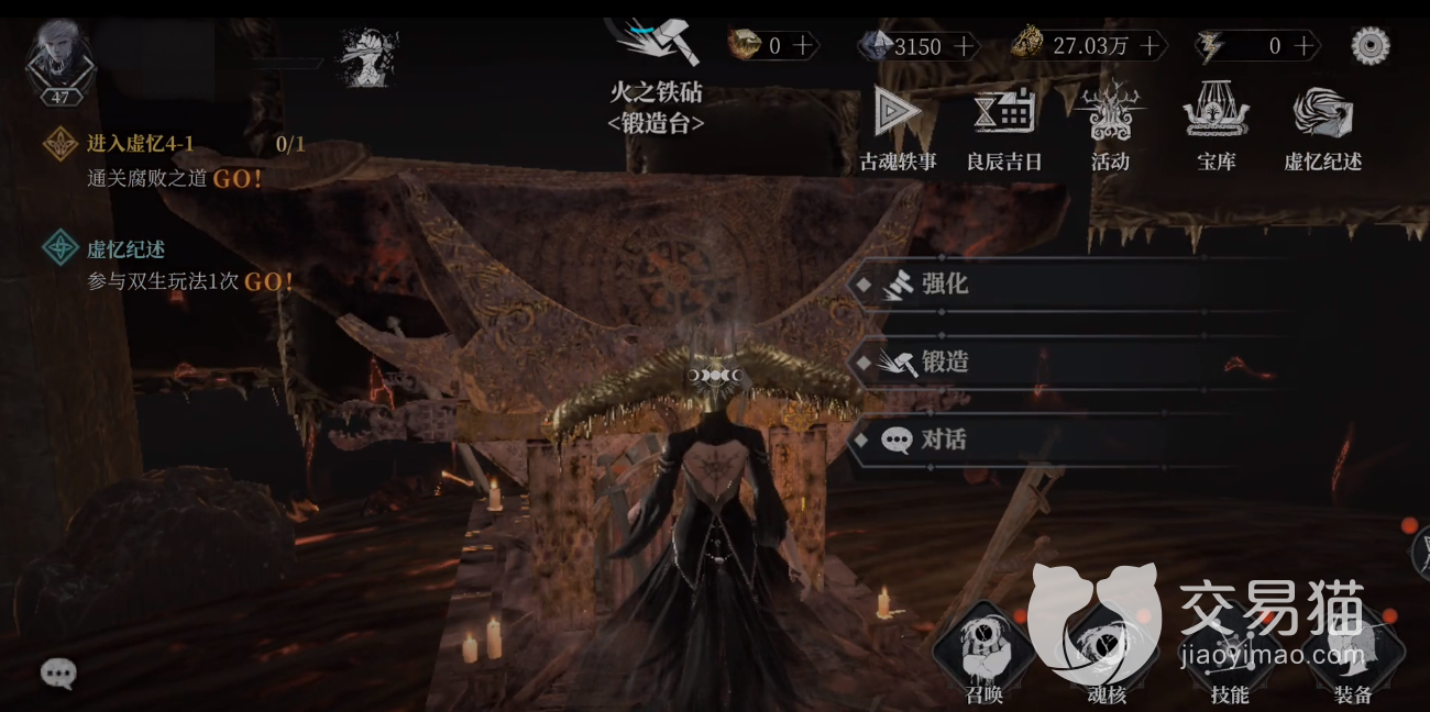 最后强化需要来到专属的地方,就是图示的这个锻造台这里,除了强化还能洗练,让装备的属性更加的合理,这也是最求极品装备的玩家常常使用的功能,消耗也是非常的多的。