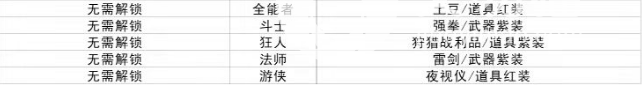 1.首先是五个无需解锁的角色,分别是斗士,游侠,法师,狂人以及全能者,比较关键的职业是法师,法师是元素伤害流以及火焰烧烧流的核心职业,33%的元素加成让法师成为了与各个花里胡哨的职业相比,也稳坐t1的存在。其次是斗士,它则是近战吸血流的核心,是比较重要的一个职业,以上五个职业都是游戏下载后自动解锁的,无需特殊条件。