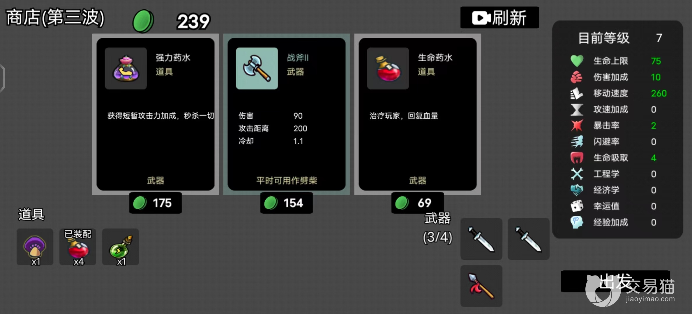 而在优势方面,角斗士的输出能力是有目共睹的,每装备一件异种武器就可以提升20%的攻速,一共可以提升接近80%的攻速,战斗起来非常的爽快,再加上本身还能提升5点的近战伤害,也就是说在近身战斗的情况下,角斗士可以无惧任何对手,站在了土豆兄弟这款游戏的第一梯队,因此选择角斗士的玩家也很多。