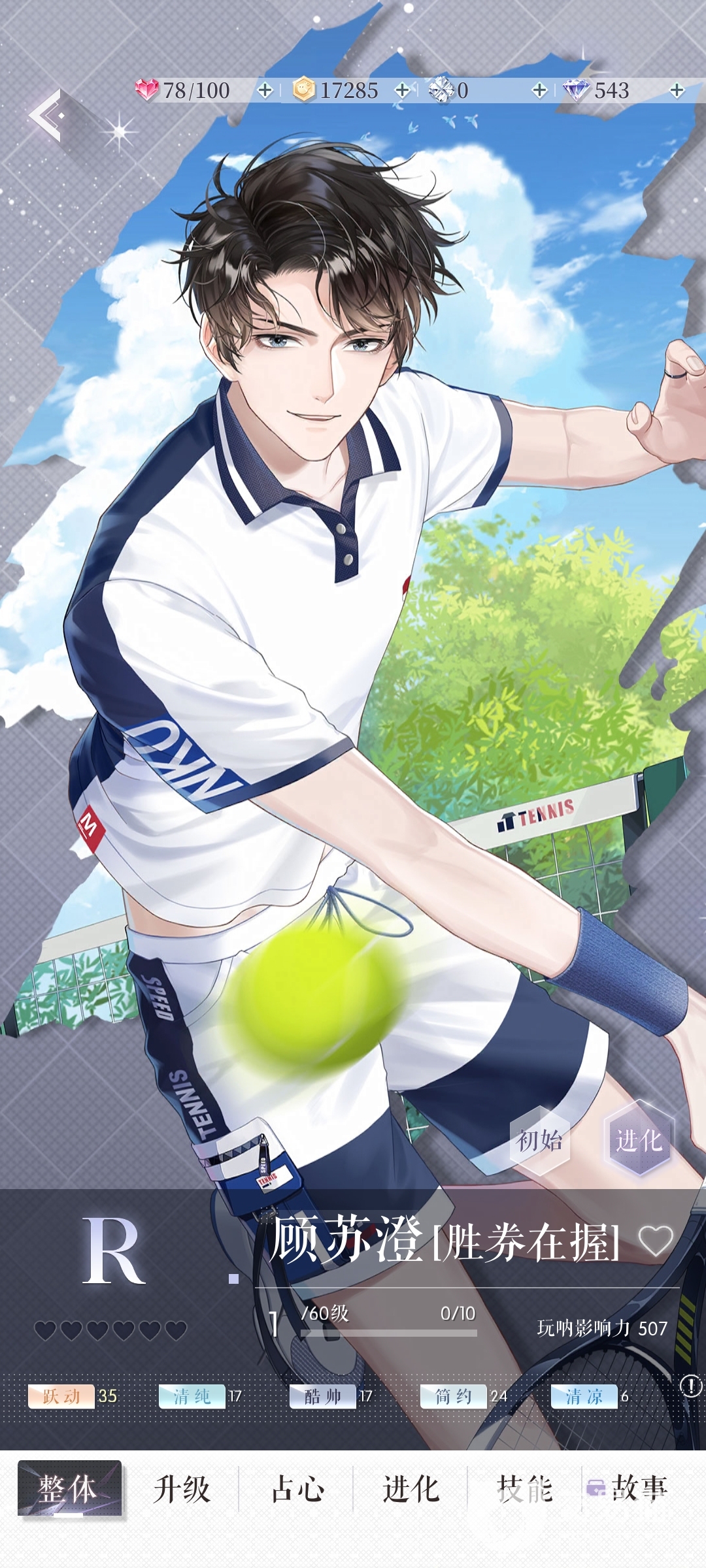 第三张和第四张都是r,但是虽然是r卡,在我们进行游戏的时候,它们也是可以帮上大忙的,先说“胜券在握”,它是r卡里少有的跃动和简约评分较高的,可以帮助我们通关大部分的前期关卡,然后再说“与你起舞”,这个是任何玩家一进游戏都会拥有了,玩家们真正意义上的第一张卡,而游戏内抽卡需要的招募券比较难获得,所以可以说一开始大家只有这张卡,所以需要培养起来好通关拿跟多的券进行招募。