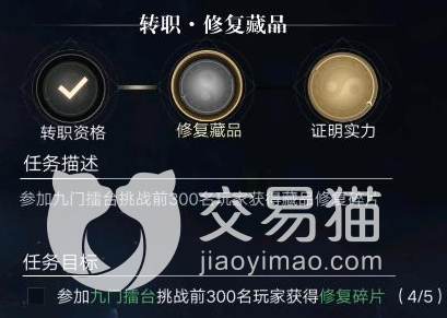 六转要求角色达到600级,具体的任务内容是去九门擂台挑战排名在前三百名的玩家,从而获得修复碎片,修复好6个藏品;这就要求积累足够多的门票,才能完成挑战;另外还得去遗迹打三次金身干尸。