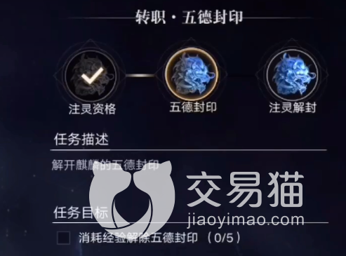 四转是靠经验堆起来的,它在角色的等级提升到140级后方能开启,任务名称叫作五德封印,需要分五次来完成,每一层的封印需要注入的经验值从19.9亿到63.4亿不等,每层都不一样,且成依次递增的状态。