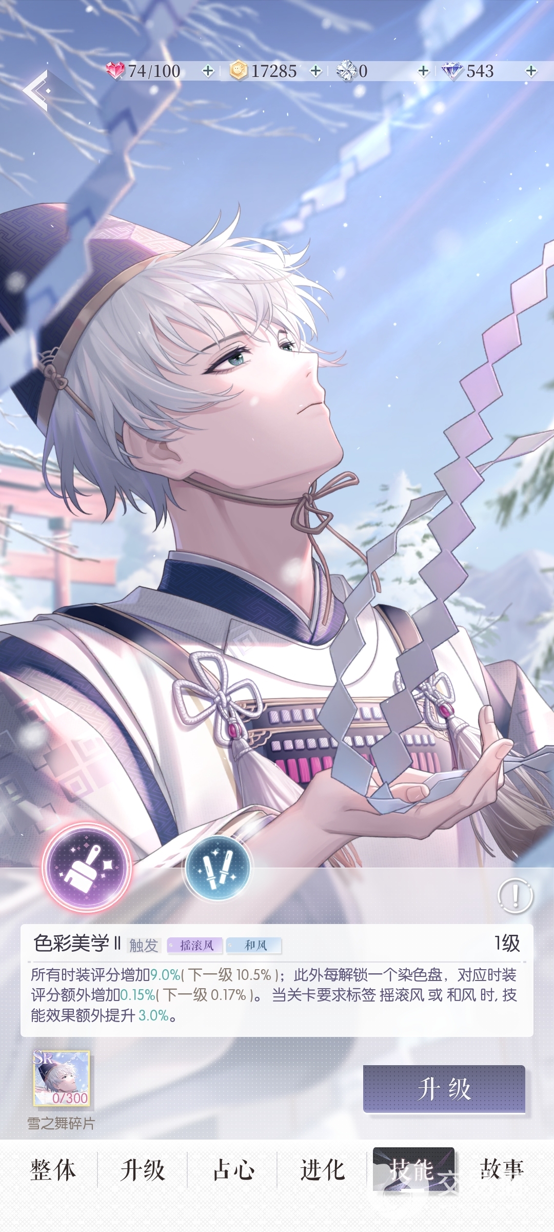 然后是叫做“电音迷阵”的sr,它的技能分别是“C为出道Ⅱ”和“闪亮记忆Ⅱ”,前者可以让当前得分最高一轮的评分增加31.2%,后者跟曼珠沙华二技能一样,不过分数会低一些,接下来是叫做“雪之舞”的sr,它的技能分别是“色彩美学Ⅱ”和“闪亮记忆Ⅱ”,前者可以让所有时装评分增加,并且如果玩家解锁的染色盘够多,或者关卡要求里包含“和风”或“摇滚风”,都会提升分数,后者则是和电音迷阵的二技能一样。