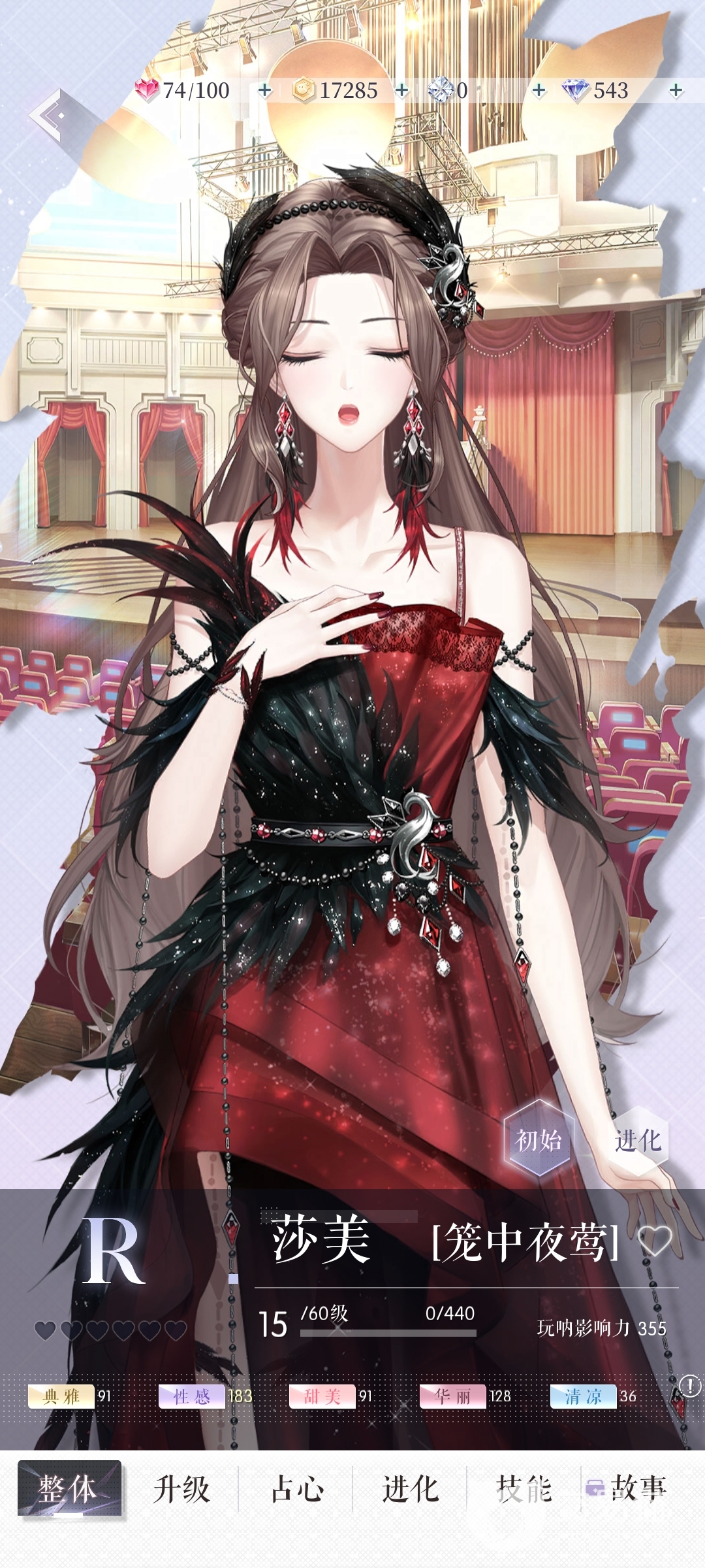 最后是叫做“笼中夜莺”的r,它的技能分别是“氛围感Ⅰ”和“闪亮记忆Ⅰ”,前者可以在风格与关卡提示一致时增加评分并额外加分,后者则是和以上几张的的二技能一样,但是分数会更低。