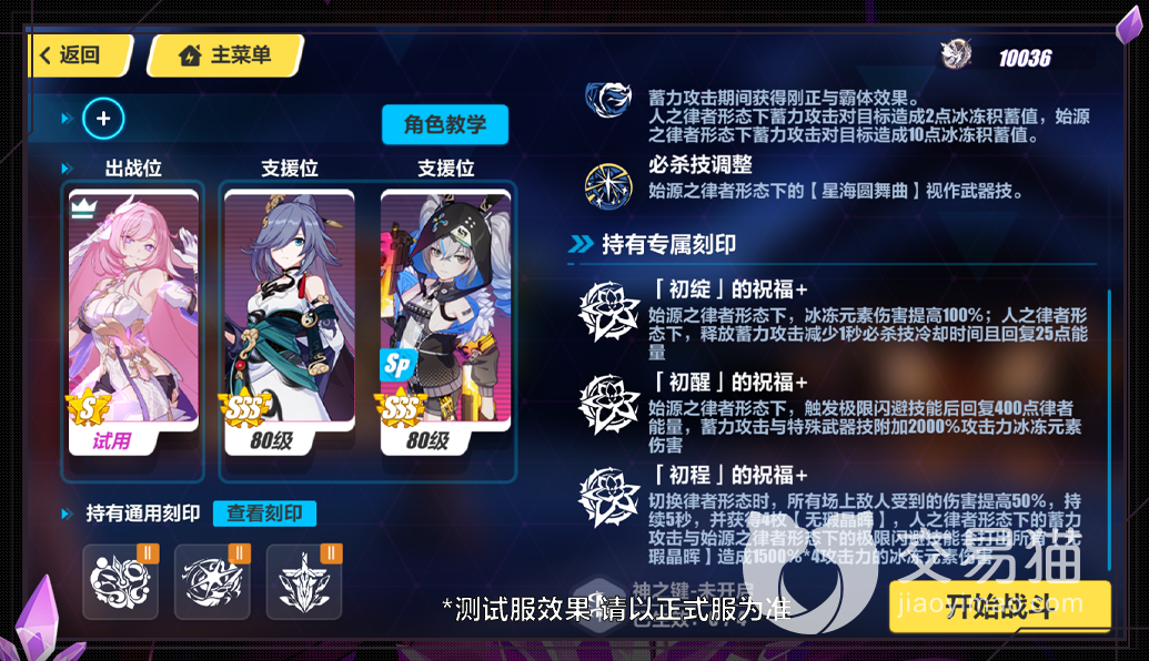 由原本的挑战模式变成了同一层内多次战斗的挑战模式,会提供固定的专属或通用刻印,支援角色也将固定,不过会提供相对应角色的试用卡,非常方便有角色但是没有培养的小伙伴们进行战斗。