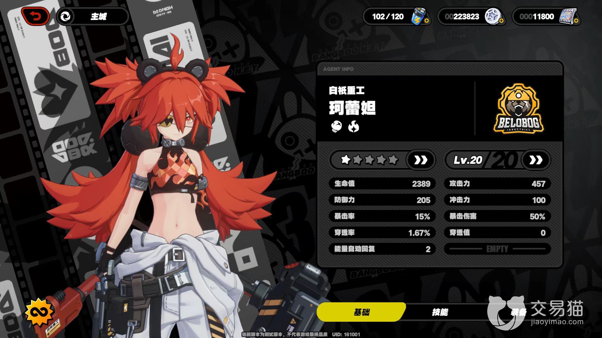 在外形上有着一头火红色头发,及其干练整洁,这点和其所属的火元素属性贴合的极其到位。在攻击时候使用一把硕大锤头,每一次打击都很有节奏感,而且自身以暴力为美学。具体战斗中,一般作为后手角色切入,因为技能冲击力和失衡倍率都比较中庸,但是却可以打出高倍率和大范围爆炸性输出,再加上天赋所带来的强化,只要先手能够打出优势,后面出手直接将对方收割。但是需要在释放特殊技的时候注意操作,需要在锤子落地的期间点击,或者是停顿后再点击,就能引发爆炸。
