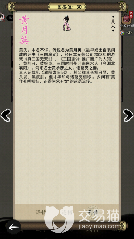 以上就是名将之弈黄月英怎么样,黄月英角色信息介绍的全部内容啦,大家要是打完了前面的几章就可以获取到这个叫做黄月英的美人啦。