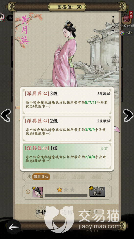名将之弈中不占上阵位的角色大家就要去看美人系列的角色,本期给大家带来名将之弈黄月英怎么样的内容,其实黄月英这个角色抽卡是很难抽到的,幸好大家可以在通过主线章节之后获取黄月英,虽然不占上阵位,但是大家想要这个女性角色输出也是很难的,一般此类角色都是辅助类的角色。