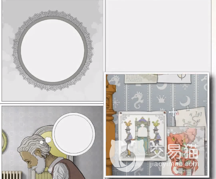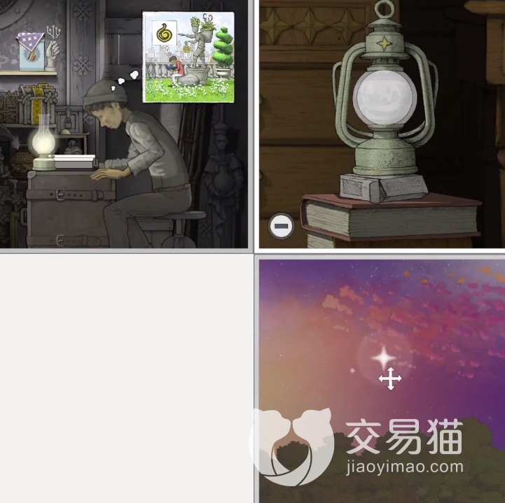 回到第1张图片主角的场景,缩小图片,发现青年时期的主角正在阅读书籍。回到第4张图片缩小,然后点击镜子进入另一个星象房间,可以看出房间的装修摆设与第1张图片主角的场景一样。此时触发剧情,第1张图片的主角遭遇地震,灯泡被砸碎,房间陷入一片黑暗,触发任务移动煤油灯。