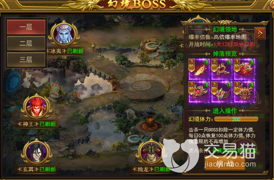 第一个挂机地点就是去幻境BOSS哪里去挂机,这个幻境BOSS的设定就是为了玩家获得更多的挂机经验,玩家平常挂机一晚上大概能收获一两亿的经验,而在幻境BOSS这边能收获五六亿的活动经验。可以让角色提升三四级,可以说是做了直升机。