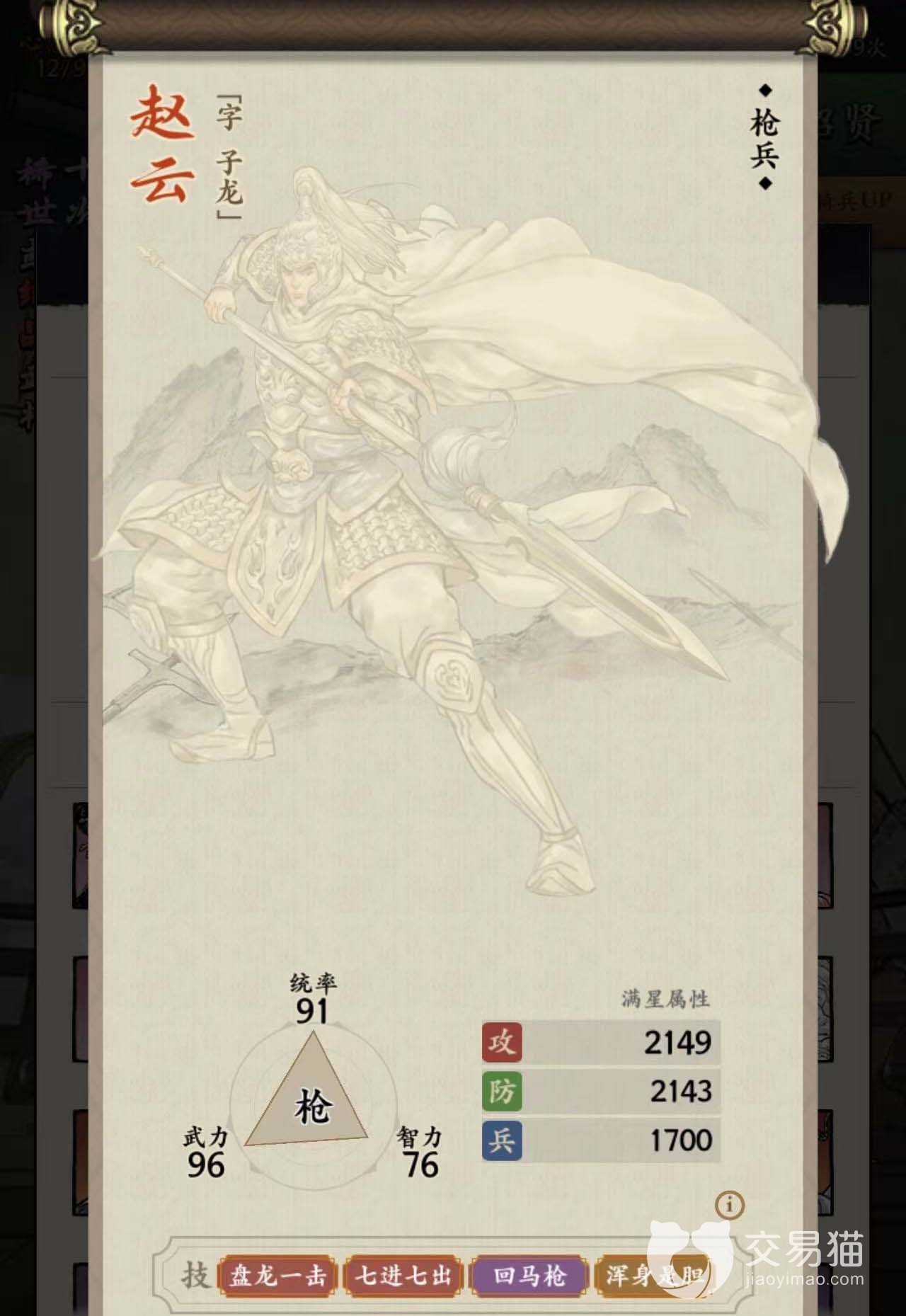 由于他是枪兵,所以你可以在阵容里面多放二到五个的枪兵。这样就可以成功激活枪兵的羁绊,能够让你可以隔山打牛一样的去攻击后排,这样便可造成aoe伤害,也能够提升技能的治疗恢复效果。在这里建议搭配赵云等枪兵一起使用,并可瞬间对敌人的中前后排同时造成强大的威胁。除了组合之外,也可以多给他堆一些攻击力强的装备,这样才能够大幅度提升他的输出效率。