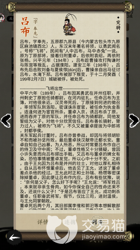 关于名将之弈吕布怎么样,吕布角色信息介绍就为大家介绍到这里啦,大家要是有更多的角色还未曾了解,可以在本平台的游戏专区中了解清楚哦。