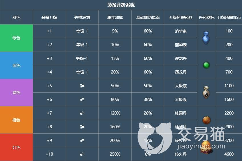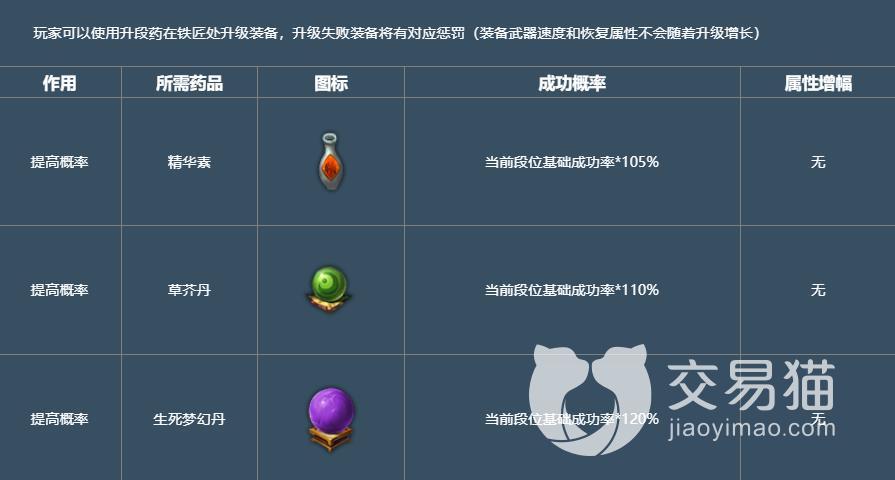 每次升级找NPC铁匠就可以升级了,每个装备级别升级需要的物品也不同,价格也不同,所以在游戏中武器升级除了要有升级物品之外,还要注意“搬砖”。不过就算凑齐了物资还要失败的可能性,可以使用炼丹系统来炼制下述的丹药,提升装备升级的成功率。