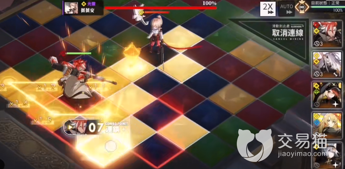 连锁技能:机甲震撼术。连锁5格,对应纵向打一次全列伤害;连锁9格,对三列造成全列伤害;连锁13格,范围攻击3列全体敌方,伤害是攻击力的1.4倍率。连锁技能与装备技能联动,尽可能扩大打击的范围,可以使麻痹效果达到最佳。